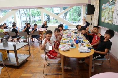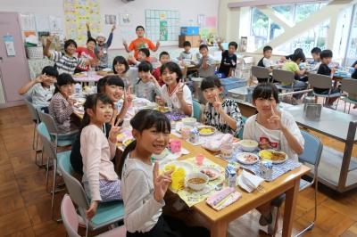 下の写真は、今日のランチルーム給食の5年2組の写真です。