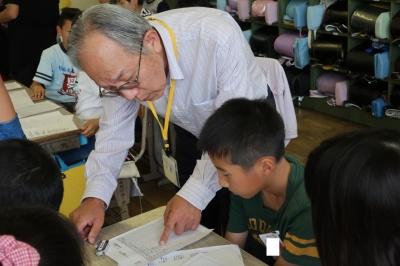 4年生で点字教室を開きました。講師には、点字サークルの皆様が来校してくださいました。一人一人に目を配り、ていねいに指導していただき、ありがとうございました。