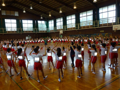 今日は、高学年と4-2の授業参観・懇談会がありました。雨の中、多くの保護者の皆様にお越しいただきまして、おりがとうございます。5年生は、学年全体で、7月22日~24日の林間学校で踊るダンスの練習をしました。