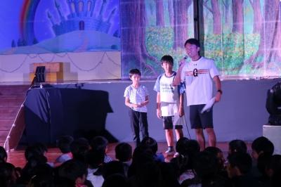 劇団「夢団」の皆様による「オズの魔法使い」を、低学年、高学年の2部に分かれて鑑賞しました。子供たちも劇の中にいつの間にか引き込まれ、思わず声を出してしまうなど、とってもエネルギッシュで楽しい、素敵な演劇でした。照明効果もきれいでわくわくしましたね。