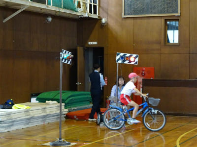 警察の方と交通指導員さんに来ていただいて、⒋年生を対象に自転車免許講習がありました。自転車の乗り方にもルールがあり、今まで間違った乗り方をしていた事に気づいた子が多くいました。