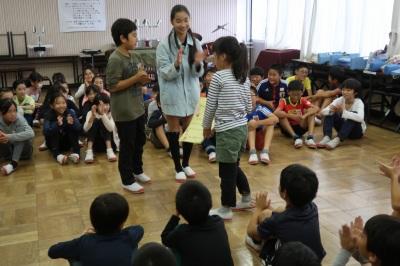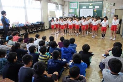 今朝の音楽集会では、11月1日に春日部市民文化会館で行われる市内小中学校音楽会に出場する5年1組の発表を行いました。きれいな歌声はもちろん、担任の稲村先生の指揮のもと、クラスで心を一つにして素晴らしい歌「風の道しるべ」を披露してくれました。