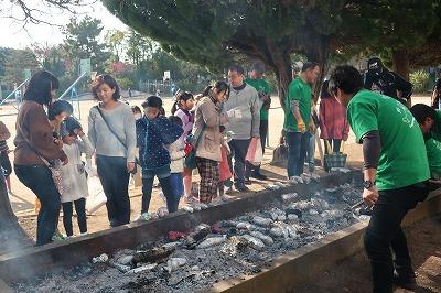 おやじの会・PTA本部の皆様の御協力により焼き芋会を開きました。200人以上の児童・保護者の皆さんも参加し、賑やかな焼き芋会となりました。