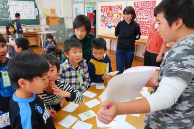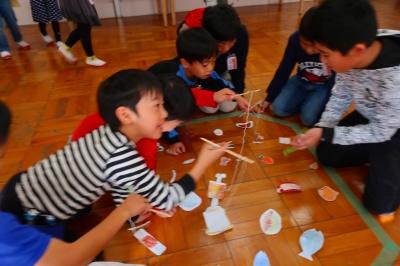 給食委員会の児童が、食べ物の勉強になるおもちゃをつくり、業間休みと昼休みを使って、1年生を対象に遊びながら食育に取り組みました。1年生が口々に「楽しかった」と言ってくれたのがうれしかったですね。