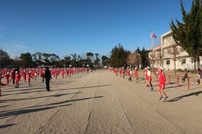 北風の強い昼。子供達は元気にのびのびタイムを楽しんでいます。中庭をのぞいたら、6年生が縄を回して1年生と長縄を楽しんでいました。とってもほほえましい光景です。