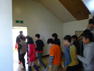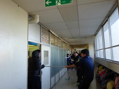 今日の2時間目には、学校に不審者が侵入したときのための避難訓練を行いました。事前にバリケード作りの練習もし、不審者侵入から避難まで、素早く対応することができました。