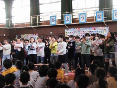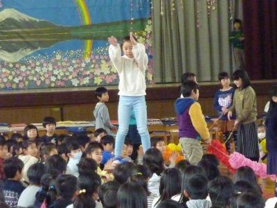 先週金曜日、送る会を行いました。1年生から5年生の、感謝の気持ちいっぱいの出し物とプレゼント、そして、6年生からも、お返しの感謝の気持ちのこもった「栄光への架け橋」の演奏と歌がすばらしかったです。みんなの心があったかくなる最高の送る会でした。