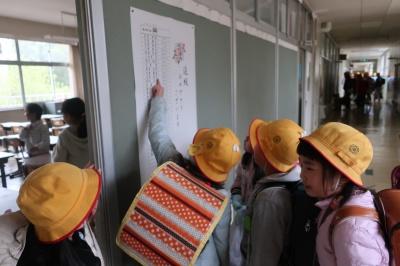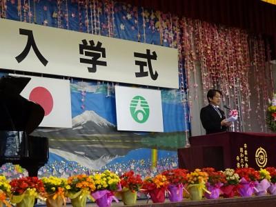 155人の新1年生が入学しました。式のはじめに、6年生が校歌を披露してくれました。風に後押しされ、桜吹雪の中、天気も回復して無事、入学式ができました。