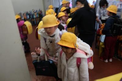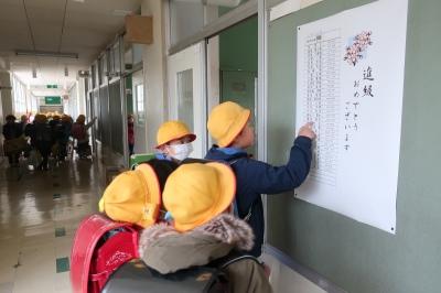 冬のような寒さと雨の中、新一年生が元気に登校しました。初めての登校で、しかも雨。昇降口で混乱していた1年生を、たくさんの上級生が、昇降口で、靴脱ぎや傘入れを手伝ってくれました。教室まで案内したり、荷物の整理を手伝ったり最後まで面倒を見てくれた上級生もいました。