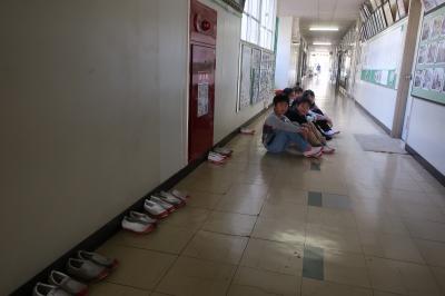 4月の健康診断が始まりました。廊下にきちんと上履きを並べ、聴力検査を黙って待ちます!