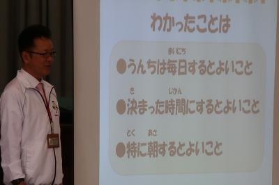 3年生が、外部指導者をお招きし「おなか元気教室」を開きました。うんちは体の健康に欠かせない大事なことである。また、よい”うんち”をするためには、規則正しい生活、早寝早起き朝ごはんが大切であることも学びました。