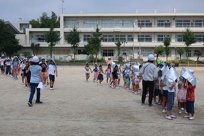災害から命を守る訓練を2つ行いました。はじめは避難訓練。1学期よりも整然と早く避難できました。