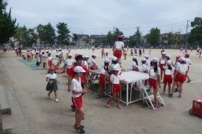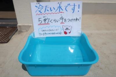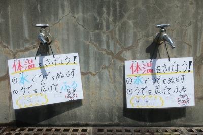 今日は、30度を超える猛暑! 外での激しい運動を制限したり、こまめに水分を取らせたりして過ごしています。保健室では、外の水道を利用したり、氷のおけを用意したりして、冷却効果で少しでも熱中症の予防になるよう努めています。