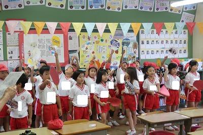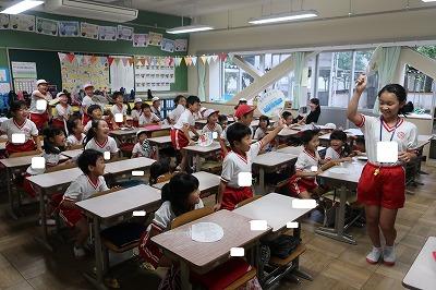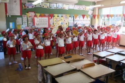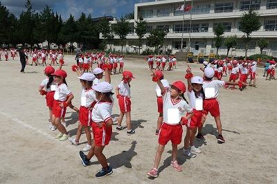 今朝、応援団の児童が各クラスへ行き、応援練習を行いました。運動会へ向けて、みんなの気分が盛り上がってきました!