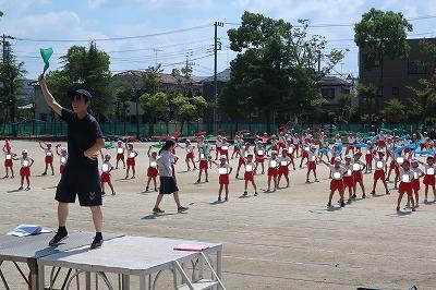 初めての全体練習! 今年から、暑さ対策として、開会式の入場行進を短くしました。校庭での応援練習にも熱が入ってきました! 各学年の表現種目も仕上がってきて、本番がとっても楽しみです。