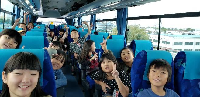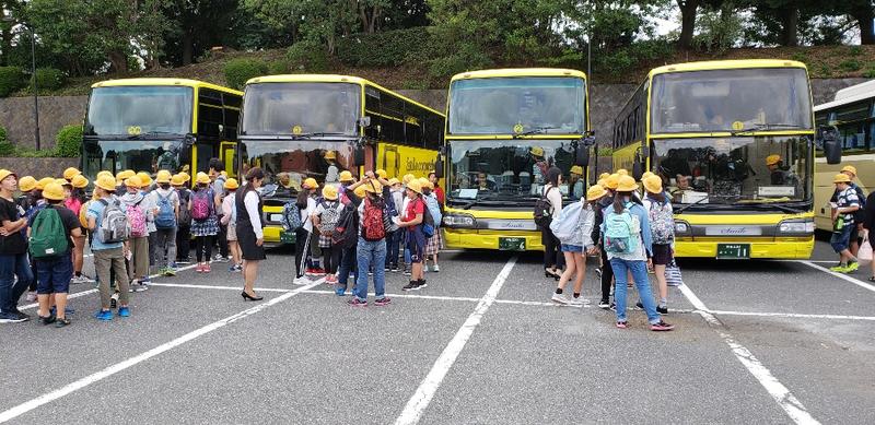 科学技術館での見学を終え、バスに乗って学校へ出発しました。
