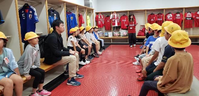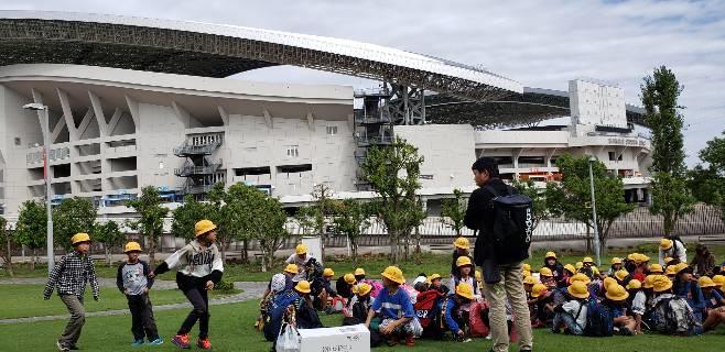 埼玉スタジアムの見学を終え、上沖小へ戻ります。
