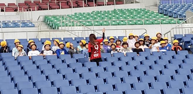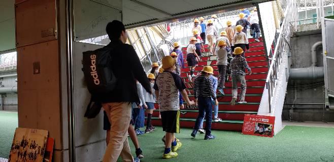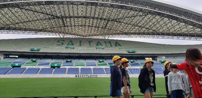 庄和浄水場の見学を終え、埼玉スタジアムに向かっています。