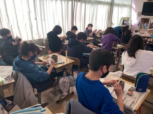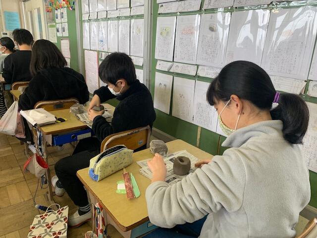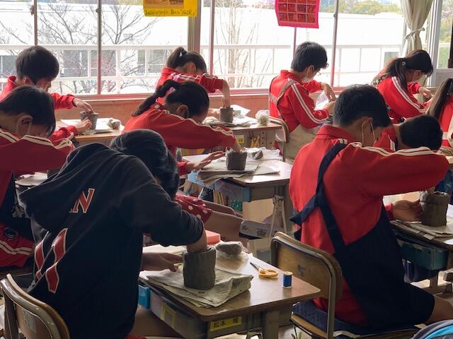 6年生の子どもたちが、「世界に一つだけの自分だけの作品づくり」をめざし、陶芸の授業を行っています。教えに来ていただいている先生の話を素直に聞き、自分でイメージしてきたお皿や花瓶、茶碗などを黙々と作りました。この後、1300度を超す温度で焼き上げていただきます。どんな作品に仕上がるか、楽しみです。