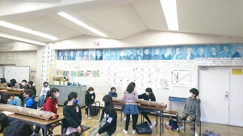 4年生が「こと」の授業を行いました。先生のピアノの音を聞きながら一生懸命「ことじ」をたてました。