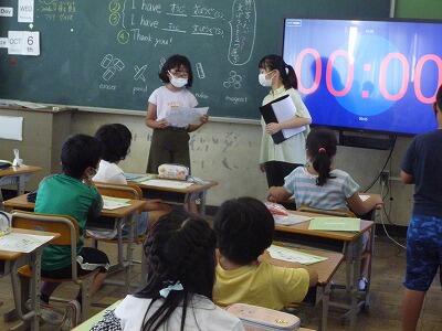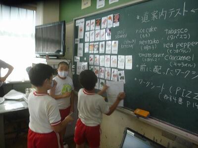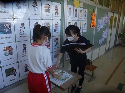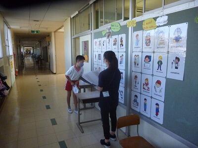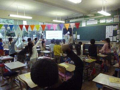 外国語活動では、英語での質問に英語で答える練習をしていました。