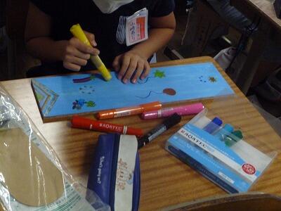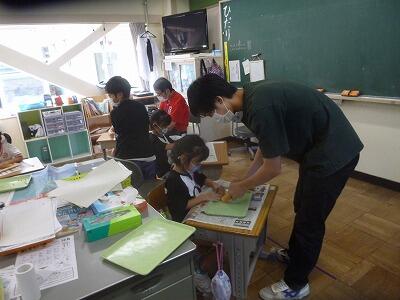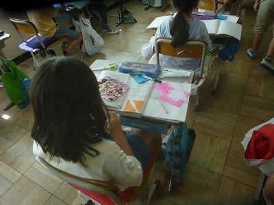 6年生のナップザック作りも仕上げに入り、みんな世界で一つだけのナップザックが完成していました。