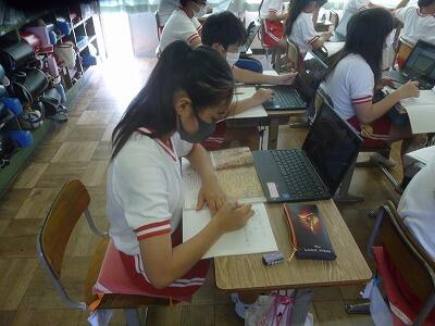 班ごとにタブレットで調べ物をして話し合いを行っていました。