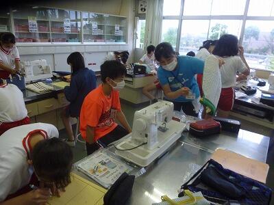 6年生の家庭科のミシンの学習もみんなが教え合いながらナップザック作りを行いました。