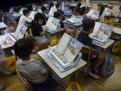緊急事態宣言が解除され、リコーダー、鍵盤ハーモニカは15分以内演奏できるようにしました。手の動きをまず覚えてから、りこーだーに挑戦していました。