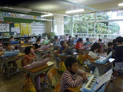 音楽ではリコーダー練習が始まりました。十分な間隔をとりながらの練習をしています。
