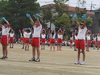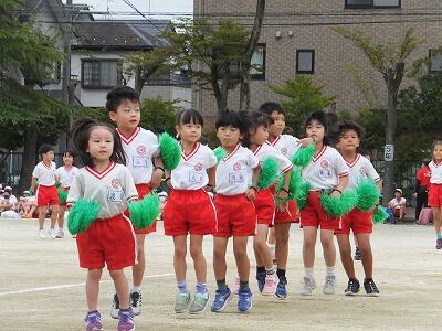 1年生、表現「おいうえおんがく いいかんじ!」では、音楽に合わせてかわいらしい踊りで、見ている人たちを温かい気持ちにさせる踊りでした。