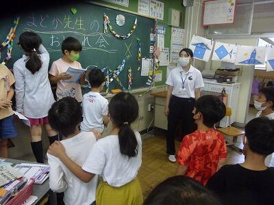 今日は、教育実習生の最後の実習日でした。これまで1か月間それぞれのクラスに入り、子どもたちの学習や生活の指導を行ってきました。今日は、各クラスでお別れ会を行いました。これまでお世話になった教育実習の先生に感謝の気持ちを伝えることができました。