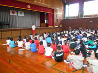 今日は5月の全校朝会です。校長先生から腰骨を立てて姿勢を良くすることで、話がよく聞けるようになることをお話していただきました。合言葉は「グー、ペタ、ピン」です。体育館では2・5年生がお話しを聞きましたが、姿勢良く集中して聞くことができました。
