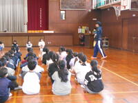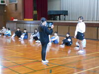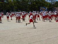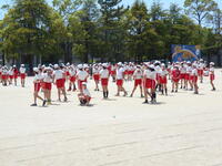 朝は運動タイム。2年生がお話をよく聞き、無駄なくきびきびと行動しています。すっかり頼もしいお兄さん、お姉さんです。