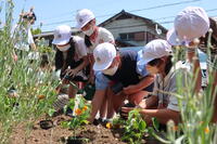 今日は3年生が向日葵の苗を植えました。地域のボランティアの方に植え方を教えていただき、大きくなあれと願いをこめて植えました。