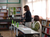 今日は6・7・8・9組が調理実習で蒸しパン作りを行っていました。チョコチップ入りで、甘いにおいが家庭科室からしてきました。