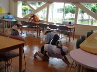 どの廊下を見ても、どの教室をのぞいても、低学年から高学年まで、一生懸命に掃除をしています。