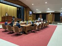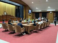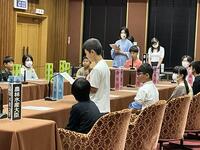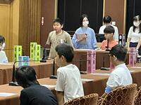 大臣や委員の役割を体験する代表の子たちが、説明を受け、準備を始めました。