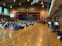 午前中の体育館では、春日部警察署の方や交通指導員さんをお招きして、交通安全教室を行いました。