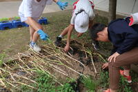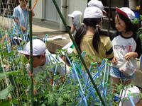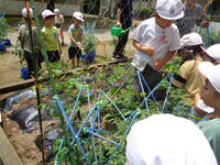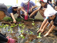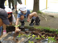 3年生は、ひまわりの苗を、校庭側の花壇に植えました。