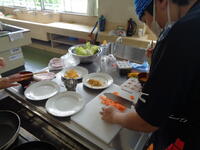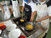 家庭科の調理実習を行いました。炒り卵と野菜炒め。