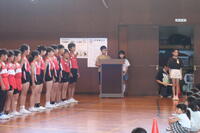 みんなのパワーを選手に送るために、選手のみんなが入場する前に、企画委員さんの号令で声を合わせる練習をしました。