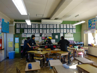 今日の2時間目には、学校に不審者が侵入したときのための避難訓練を行いました。事前にバリケード作りの練習もし、不審者侵入から避難まで、素早く対応することができました。