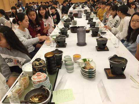 見たこともないような、広くて豪華な部屋で夕食をいただきました。たくさん食べてお腹いっぱいです。
