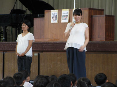 主に5年生の算数、6年生の算数を受け持っていたお二人の先生が、御出産のため、夏休みからお休みに入ります。終業式の後、お二人の先生から全校児童にお別れのあいさつがありました。命の愛おしさ、大切さについてのお話があり、子供たちからは自然と温かい拍手がわきあがりました。みんなで新しい命の誕生を待っています。
