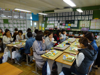 1年生の学年行事である「給食試食会」が行われました。体育館で栄養教諭の講義の後、1年生の給食を見学し、6年生の教室を使って(6年生が修学旅行のため)給食を食べました。「焼きそば、エスニック春巻き、埼玉っ子サラダ、みかん、牛乳」の量も多く、大満足の様子でした。