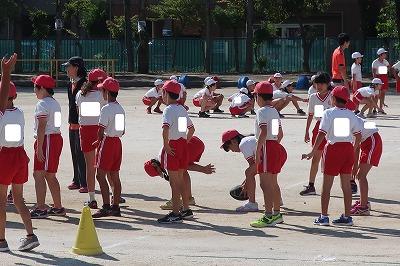 演技全体を通して練習できるようになってきました。かわいい飾りをつけたり、手に持ったりして頑張っています。今年、ラグビーのワールドカップが日本で開かれますが、5年生の競技にラグビーボールを取り入れた工夫もしています。
