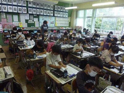 書写の習字の時間は、全員が話をせず集中して筆をはしらせている姿が見られました。どんどんうまくなっています。