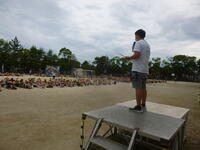 今日の朝は全校朝会を行いました!校長先生が、「挨拶がきらいな王様」のお話をして、改めて「気持ちのよいあいさつ」の大切さについて考えることができました!また、今月の生活目標について、熱中症の予防・廊下歩行について確認しました!1学期も残りわずかとなりましたが、充実した学校生活を過ごしてもらいたいと思います!