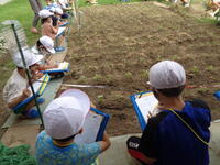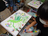 2年生が、先日植えた大根の芽を観察しました!種からしっかりと芽が出てきたことに、喜びを感じているようでした!1年生は、様々な色を使って、生き物を上手に表していました!